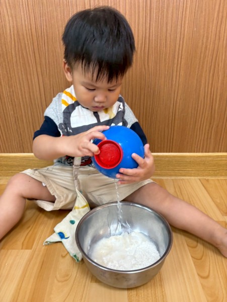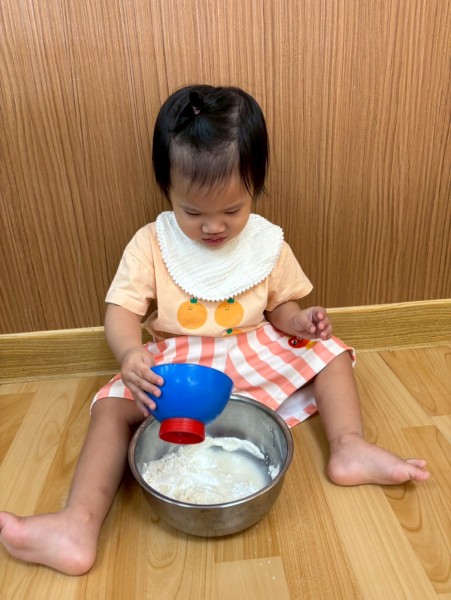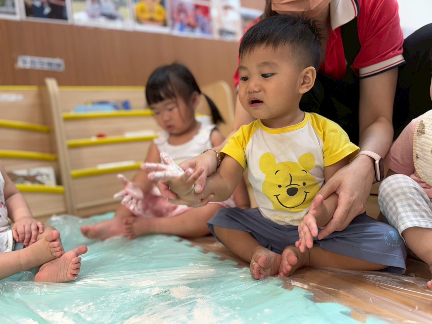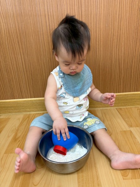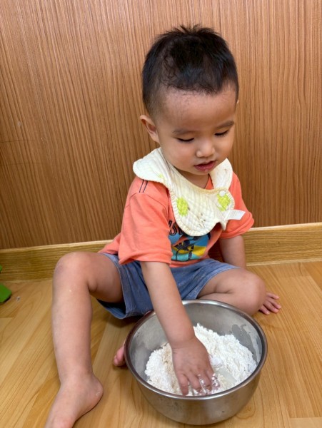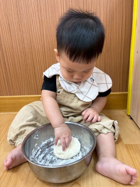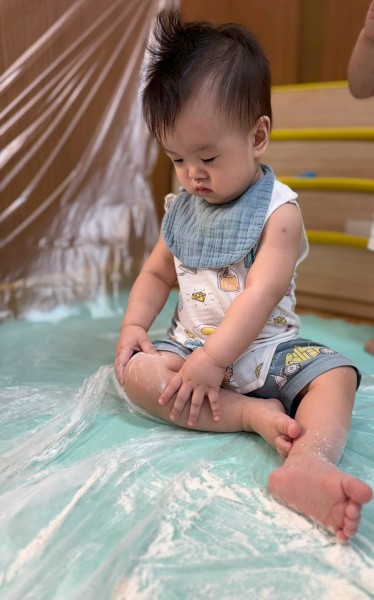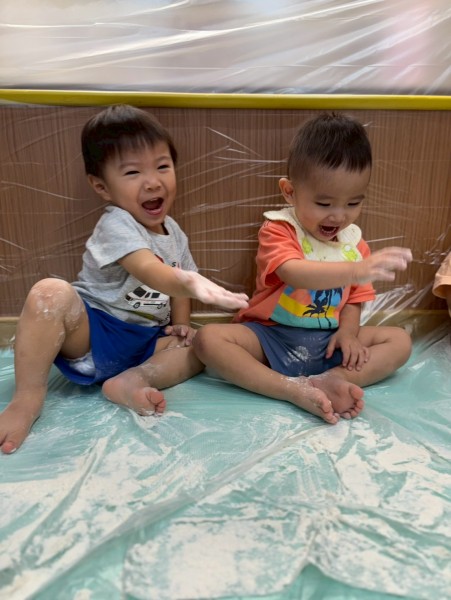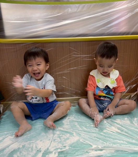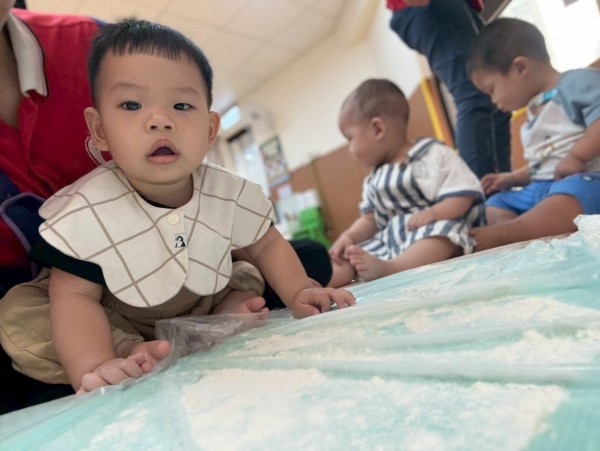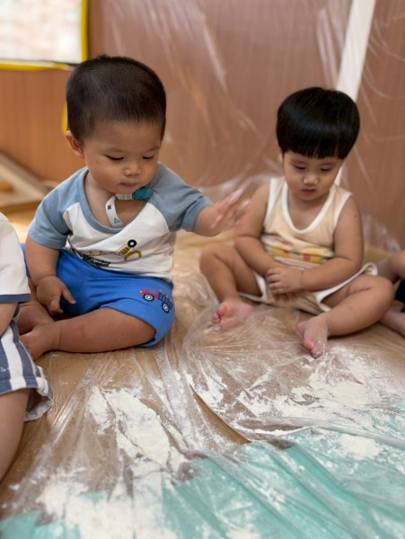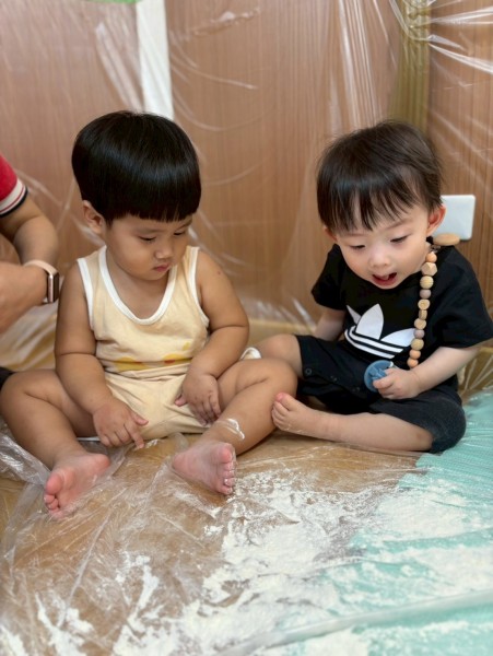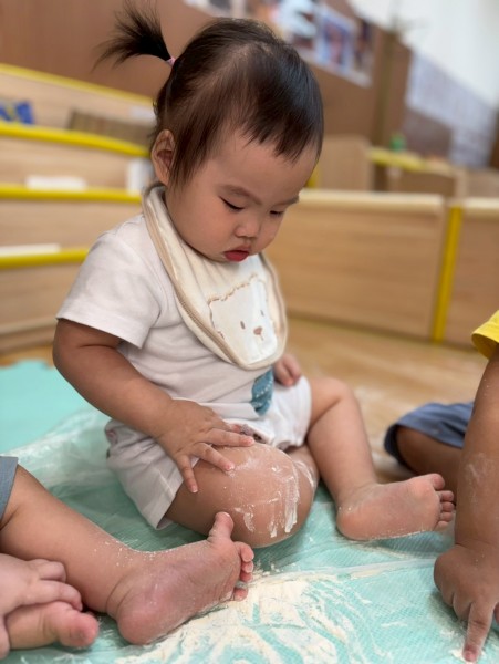 配合這個月的主題課程,本週帶領孩子們進行「好玩的麵粉」活動。寶貝們在探索過程中,能用小手去觸摸、搓揉麵粉,感受不同的觸覺體驗呢~