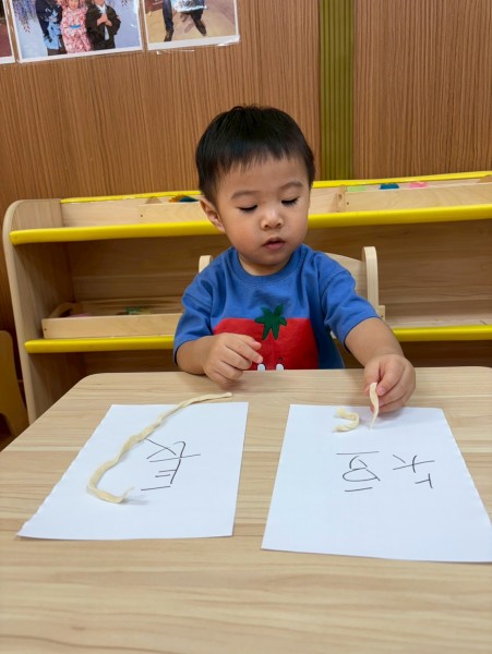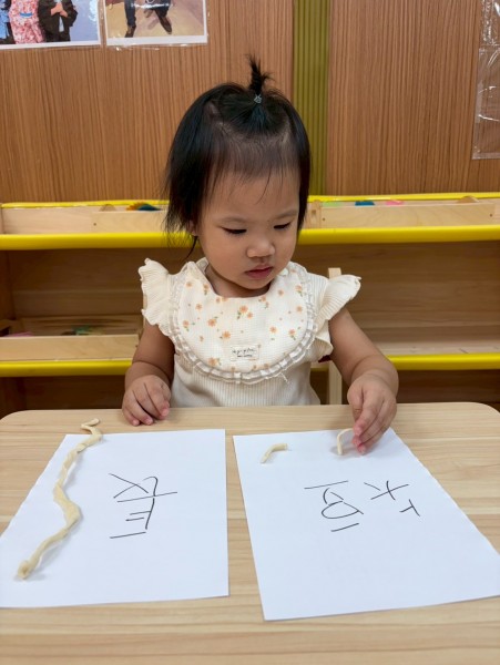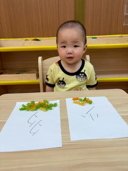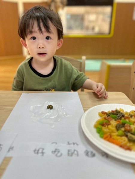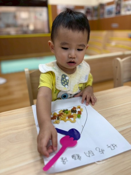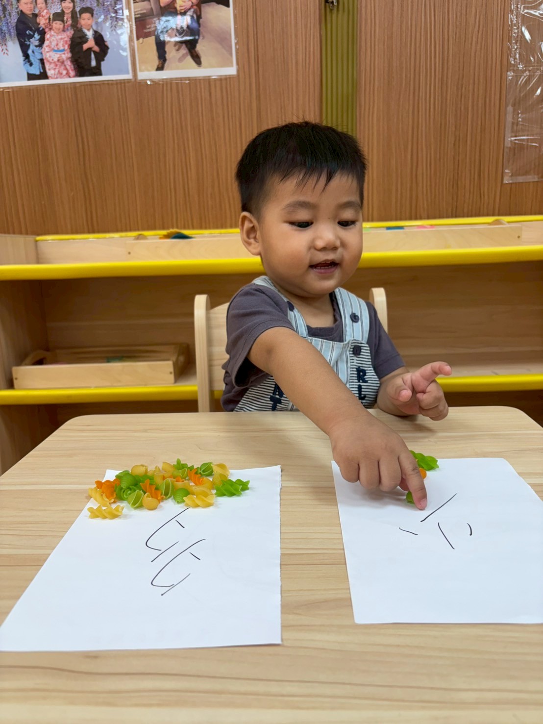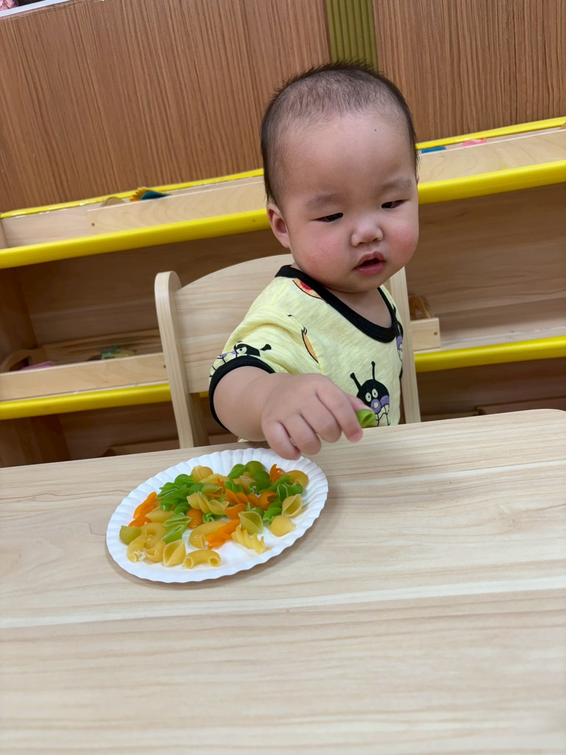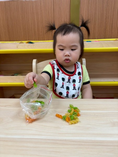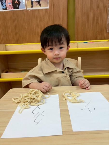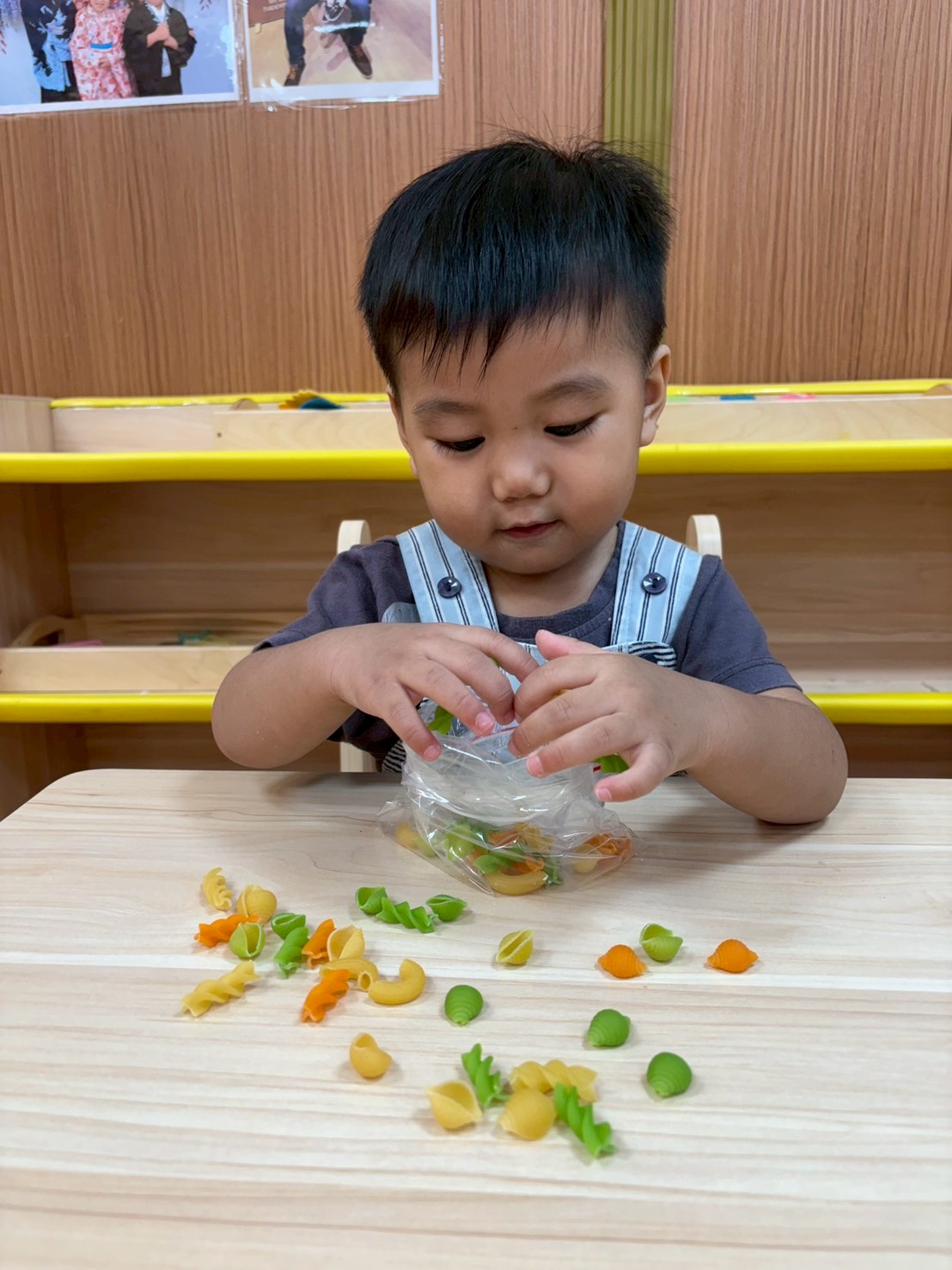 這週課程進行『好吃的麵條』,寶貝們興奮地動手玩著麵條,有的拉一拉、有的搓一搓,比較大的寶貝還會拿著麵條比較長短,在課程中體驗到不同的感官樂趣呢!