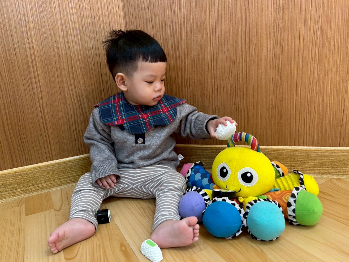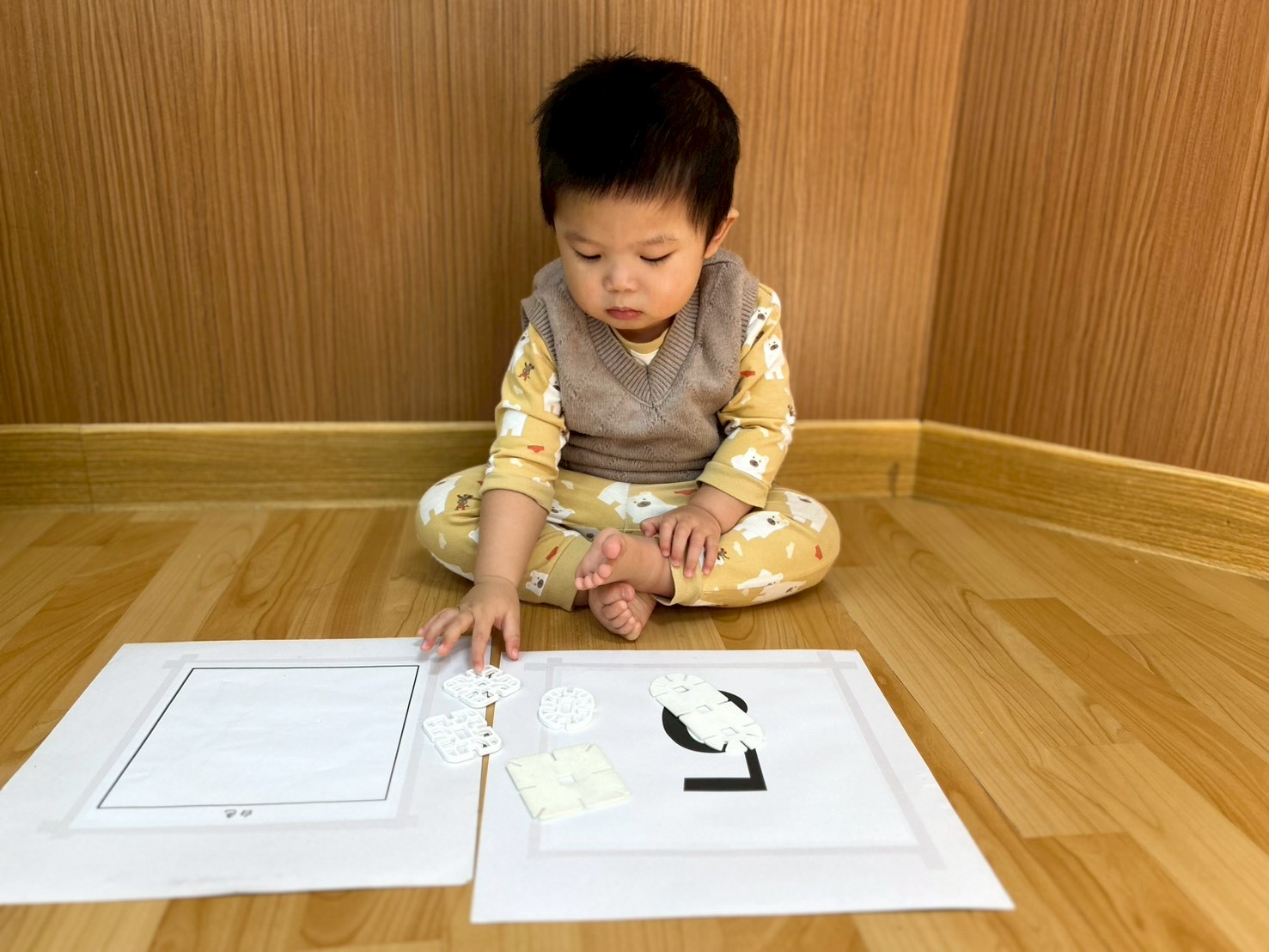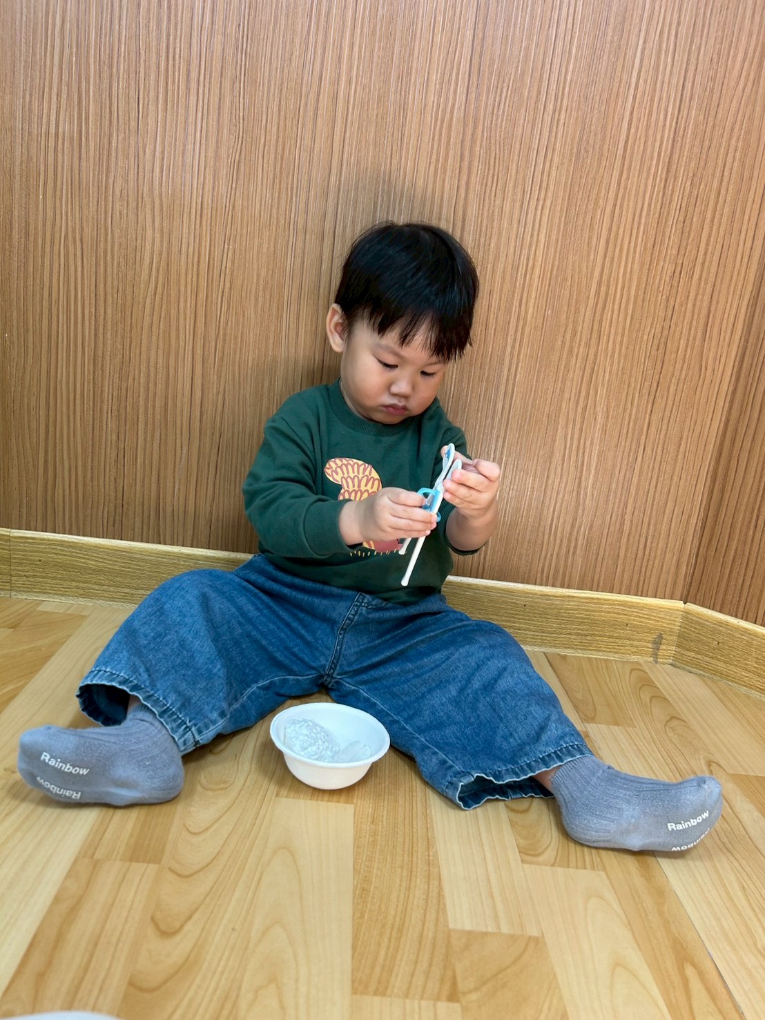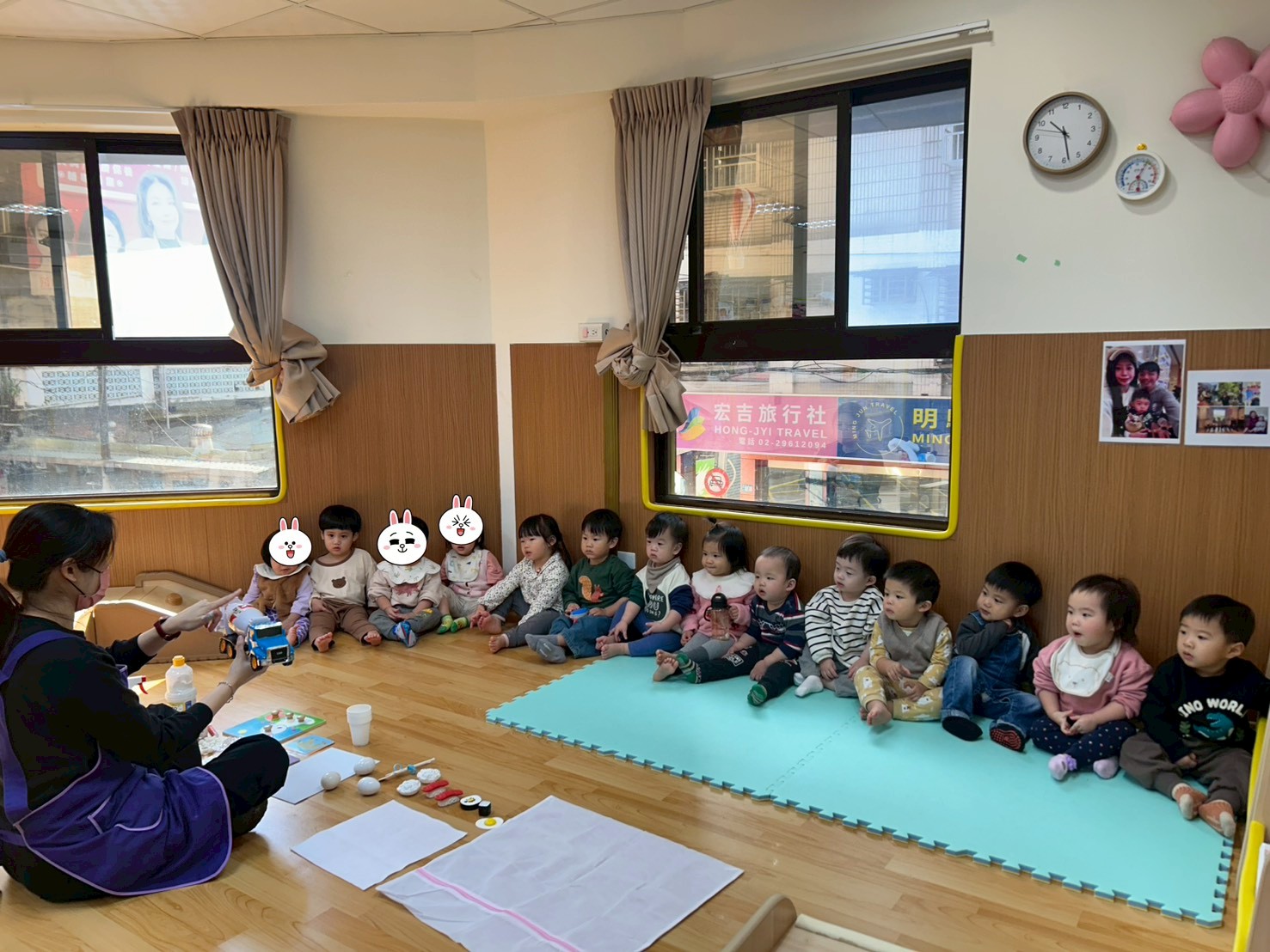 這禮拜主題課程「認識白色」,老師準備了各式各樣白色的教具及生活用品,引導寶貝們透過觀察、觸摸與操作來認識顏色。活動中,寶貝們能專注看著白色物品,並在老師協助下嘗試指認、配對顏色、數字及形狀,整體活動氣氛溫馨又有趣,寶貝們的互動也很可愛呢! |