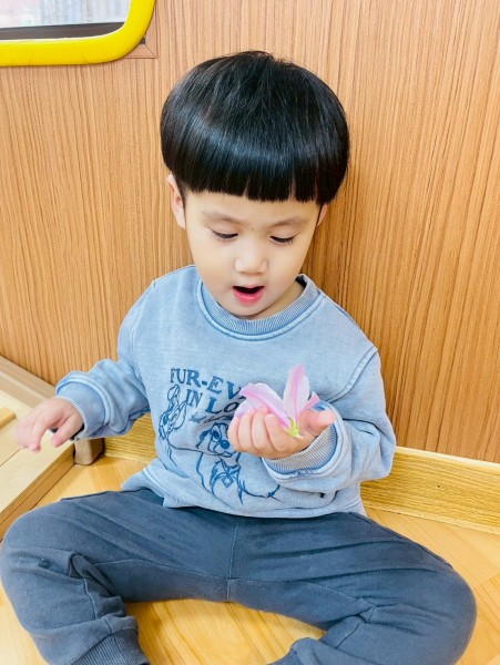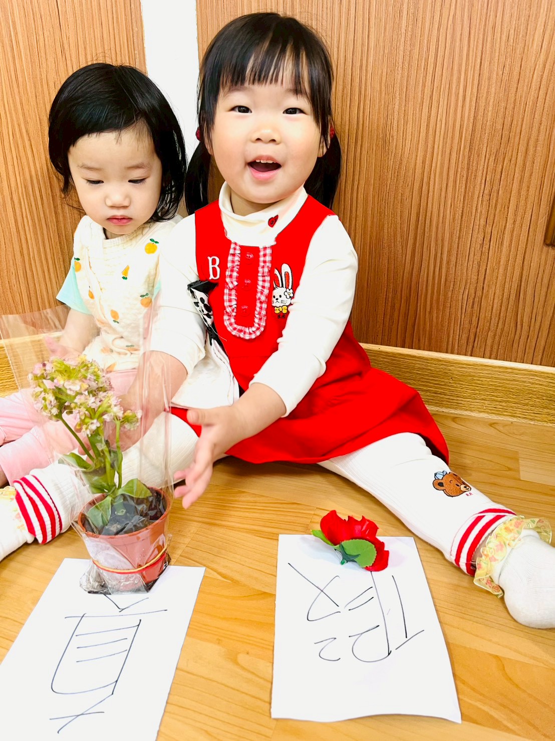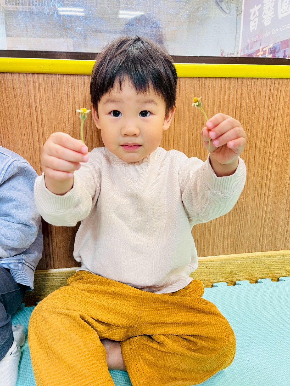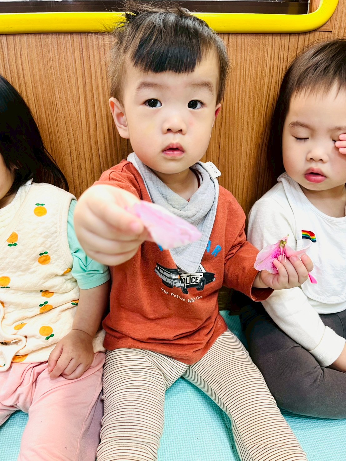 這禮拜我們上了「春天的花朵」主題,老師準備了各種不同的花朵,帶著寶貝們一起觀察與認識。透過看一看、摸一摸,讓孩子們感受花朵的顏色與形狀,也一起比較花朵的大小、多與少,並認識真花和假花的不同,讓寶貝在探索中學習與體驗春天的氣息。