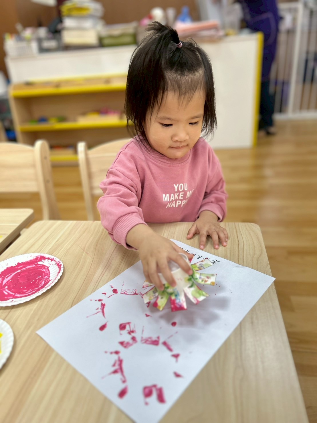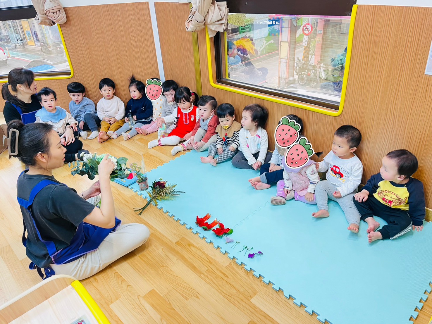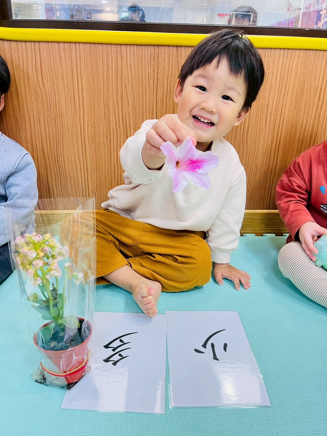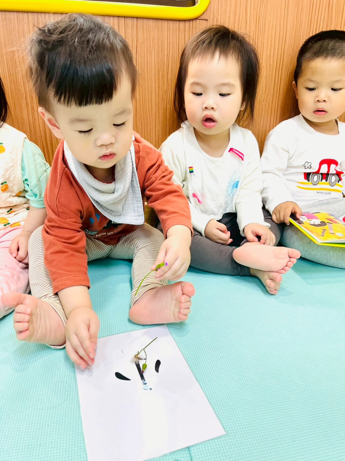 這禮拜我們上了「春天的花朵」主題,老師準備了各種不同的花朵,帶著寶貝們一起觀察與認識。透過看一看、摸一摸,讓孩子們感受花朵的顏色與形狀,也一起比較花朵的大小、多與少,並認識真花和假花的不同,讓寶貝在探索中學習與體驗春天的氣息。